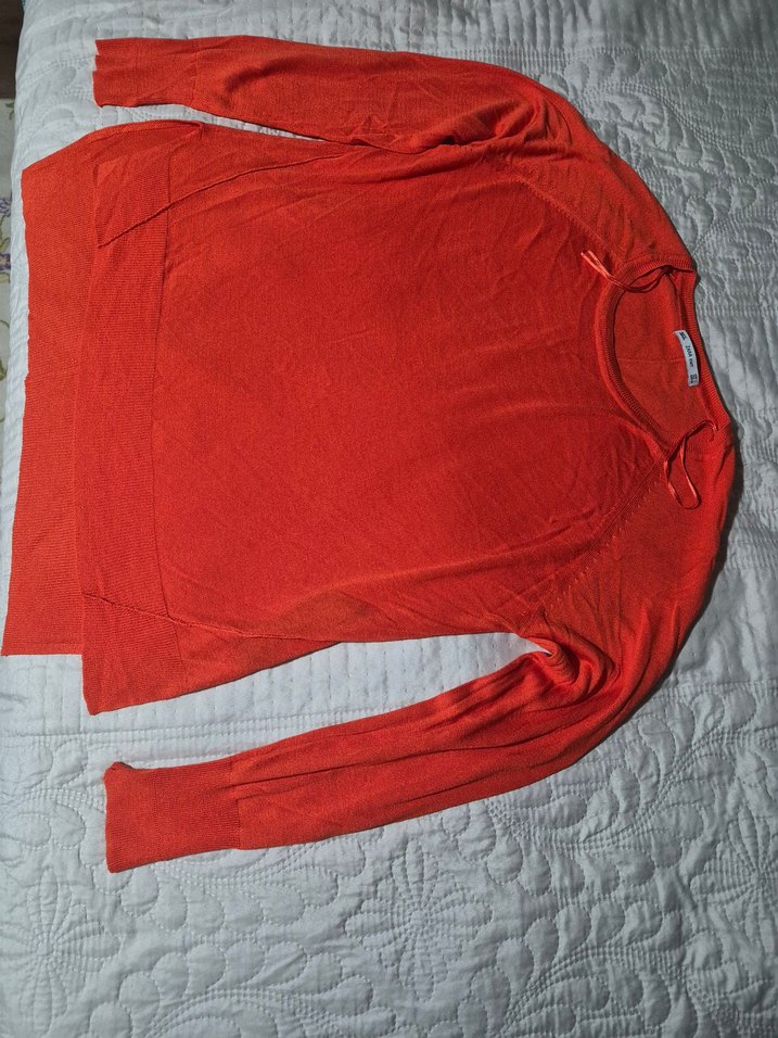 Zara Knit koleksiyonundan, çok canlı ve enerji dolu bir turuncu tona sahip ince triko. Beden: L (Kalıbı standarttır, dökümlü durur). Durum: Çok temiz kullanıldı, herhangi bir söküğü, lekesi veya tüylenmesi yoktur. Detay: Yan kısımlarında şık yırtmaç detayları mevcuttur. Kumaşı yumuşaktır ve yakma yapmaz. Hem jeanlerle hem de kumaş pantolonlarla harika kombinleniyor. Alıcısına şimdiden hayırlı olsun!"