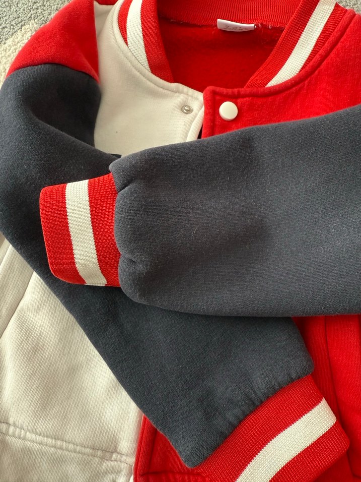 Düğmeli, bisiklet yakalı ve fitted kesim erkek çocuk ceketi. Kırmızı, gri ve krem renklerde, sokak modası tarzında, yumuşak ve sıcak dokulu kumaşla üretilmiştir.