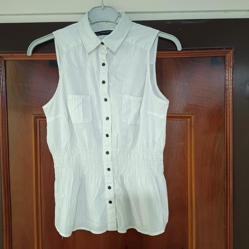 Zara Kolsuz Beyaz çizgili Kadın Gömlek