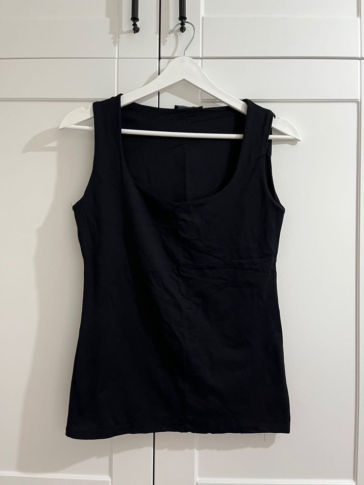 Siyah renkli, kolsuz atlet. Günlük kullanım için minimal ve zahmetsiz şıklık sunar.