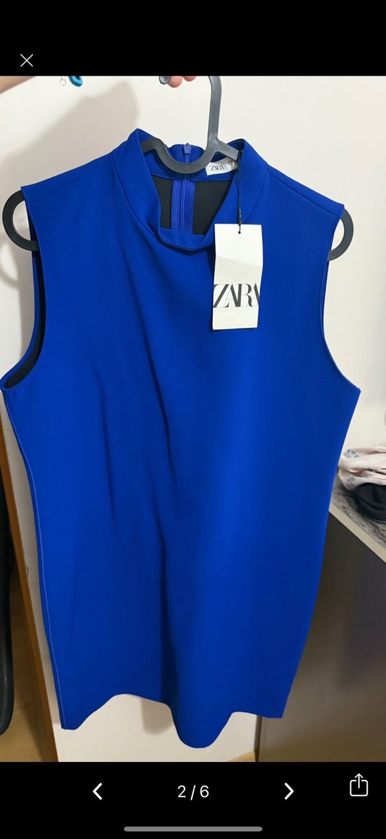 Zara Kolsuz Yüksek Yakalı Mavi Kadın mini elbise