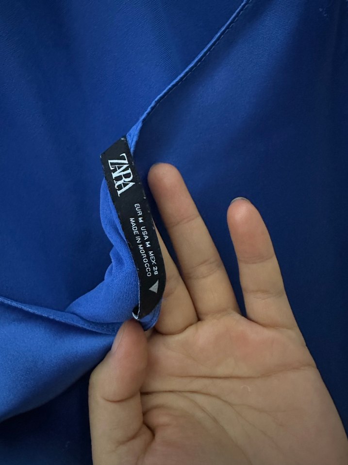 Zara marka, yumuşak dokulu koyu mavi renkte askılı elbise defoları mevcut bır kere gıyındım makineye attım bu hale geldi fiyatı cok uygun kaçmaz terzide halledilebilir çok şık cok harıka bir elbise balayı için almıştım