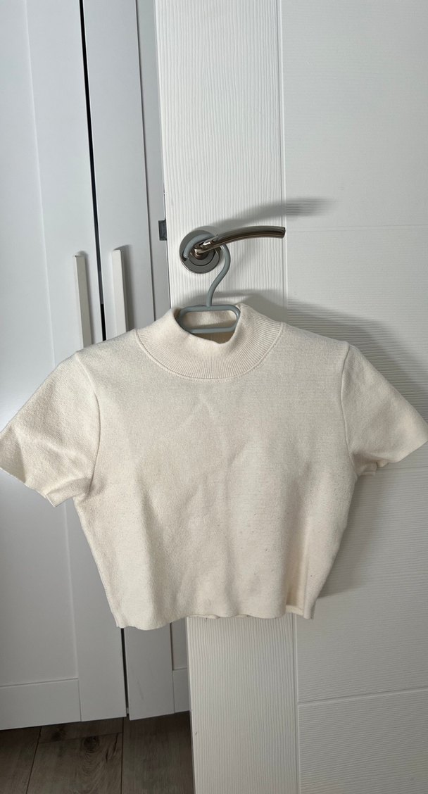 Zara Krem Rengi Kısa Kollu Yüksek Yakalı Bluz