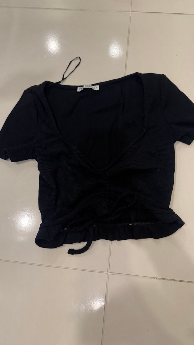 zara kurdeleli siyah crop