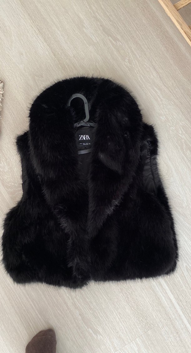 Yelek kürk mükemmel durumda Siyah kolsuz, kürk detaylı yaka ve normal uzunlukta, rahat fleece kumaşlı, düz ve gövdeye oturan midi yelek.