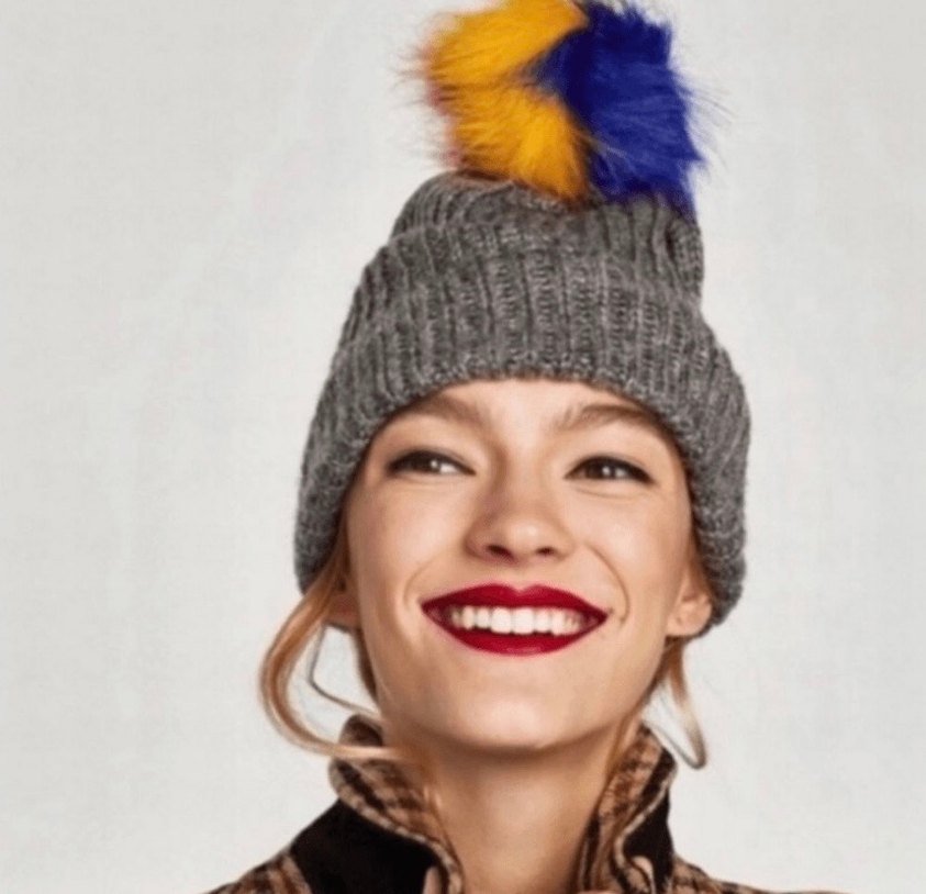 Zara Kürk Ponponlu Gri Bere. Soğuk havalarda sıcak tutar.