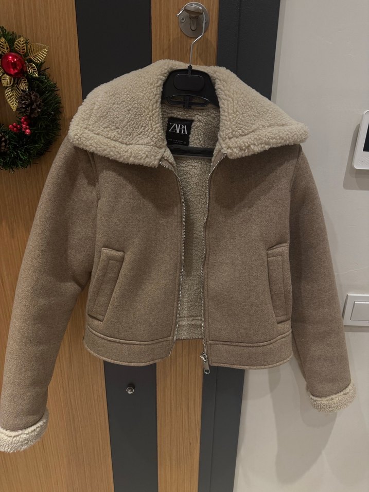 Zara Kürklü Bej Kısa Kadın Ceket