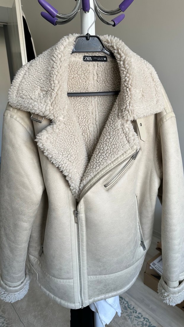 ZARA kürklü erkek bej deri ceket