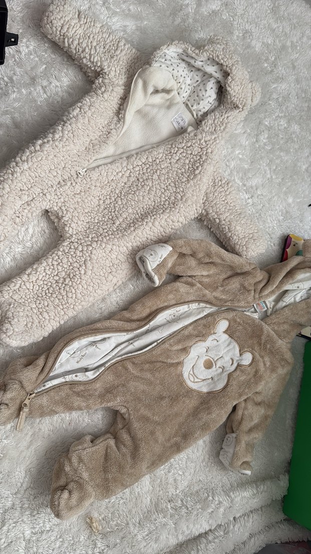 Yumuşak ve sıcak kumaş, kürk detayları ve nakışlı desenlerle bebek tulumu, gri ve kahverengi tonlarında sokak stili için uygundur. ❄️