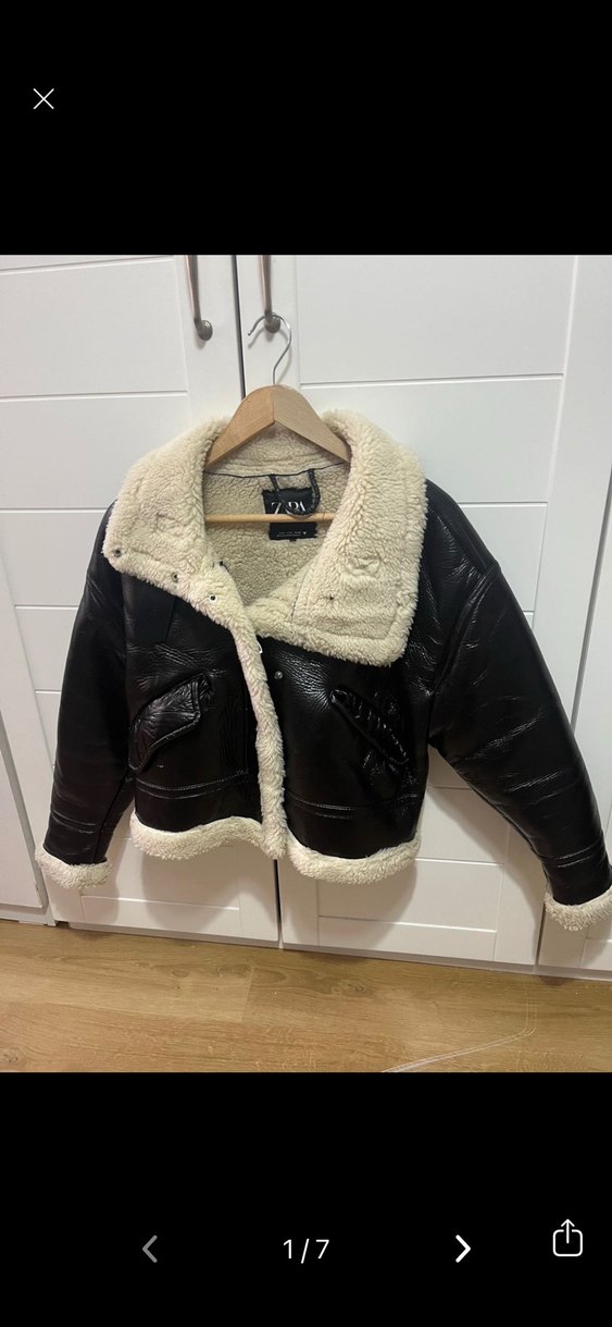 Kürklü yakası ve etek ucu olan siyah deri kadın mont. Dar kesim, kesik yakalı ve kısa boylu, günlük kullanım için uygun sokak stili.
