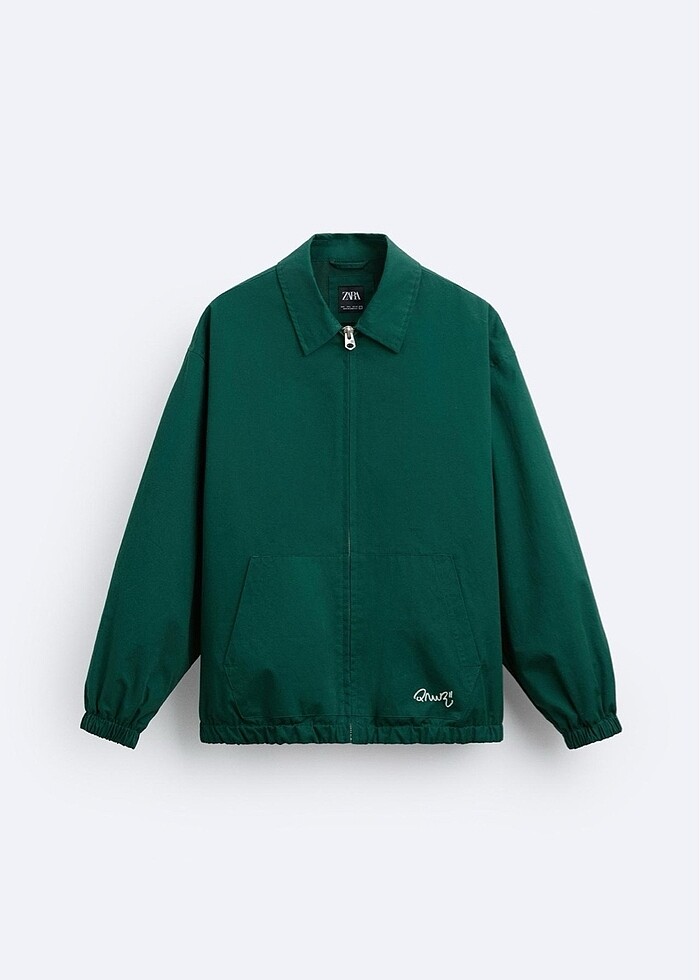 Zara L Beden Kontrast İşlemeli Yeşil Ceket