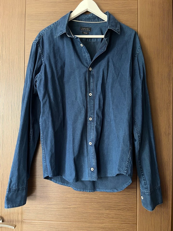 Düğmeli, yakalı ve uzun kollu lacivert denim gömlek. Normal boy ve rahat kesimiyle günlük kullanıma uygundur.