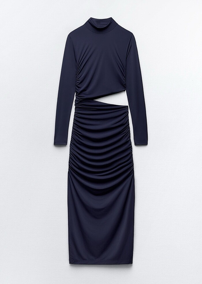 Zara lacivert elbise yanı yırtmaçlı