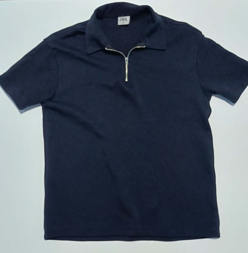 Zara Lacivert Fermuarlı Polo Yaka T-shirt