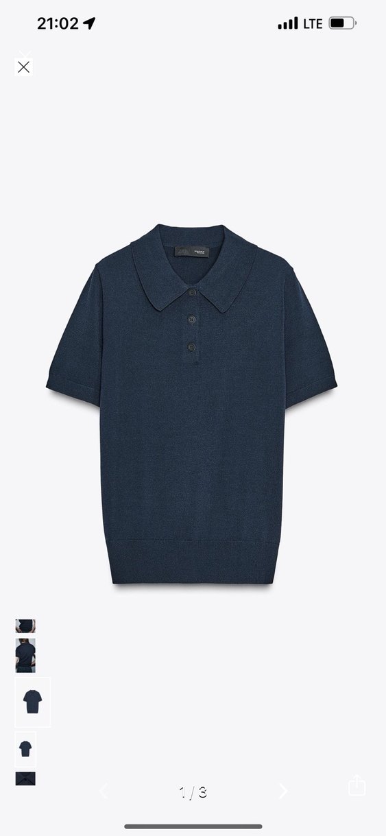 Zara Lacivert Kısa Kollu Denim Polo Tişört