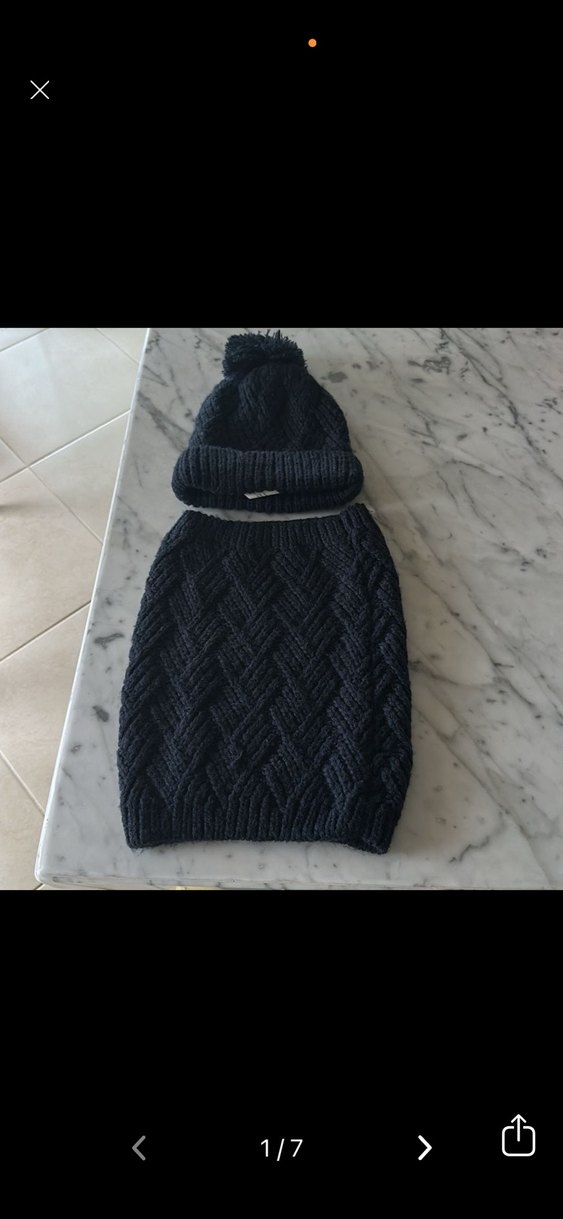 Lacivert renkli, örgü dokulu kız çocuk bere ve ponponlu boyunluk seti, rahat sokak stili için uygundur.
