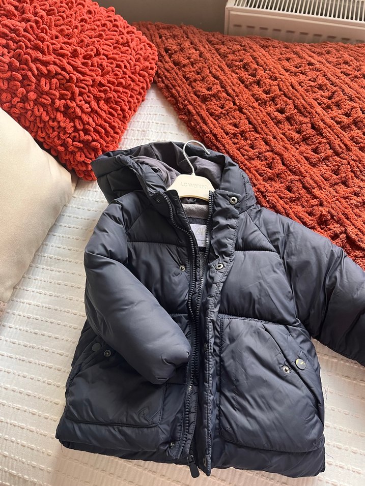 Lacivert renkli, kürklü detaylı ve yumuşak fleece astarlı, notched lapel yakalı erkek çocuk mont. Normcore tarzıyla trend görünümler için uygundur. Zara marka orijinal 2 buçuk yaşa kadar rahat giyildi #zara #mango #çocuk #mont #kaban