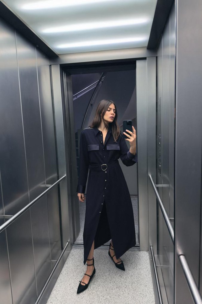 Zara gömlek yaka ve uzun kollu elbise. Ön pat detayları ve saten yüzeyli. Önden düğmeli ve kemerli #yeni#etiketli#zara#gömlek#yaka#saten#yüzeyli#düğmeli#kemerli#uzun#midi#elbise#mavi#renkli
