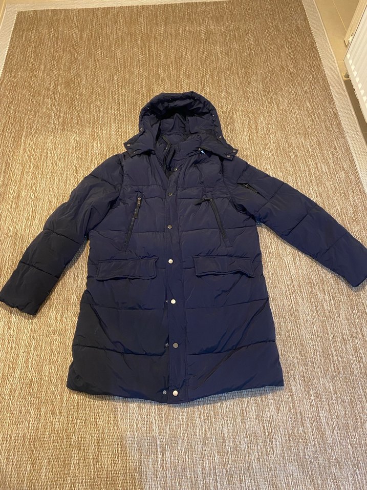 ZARA Lacivert Uzun Kadın Kışlık Mont