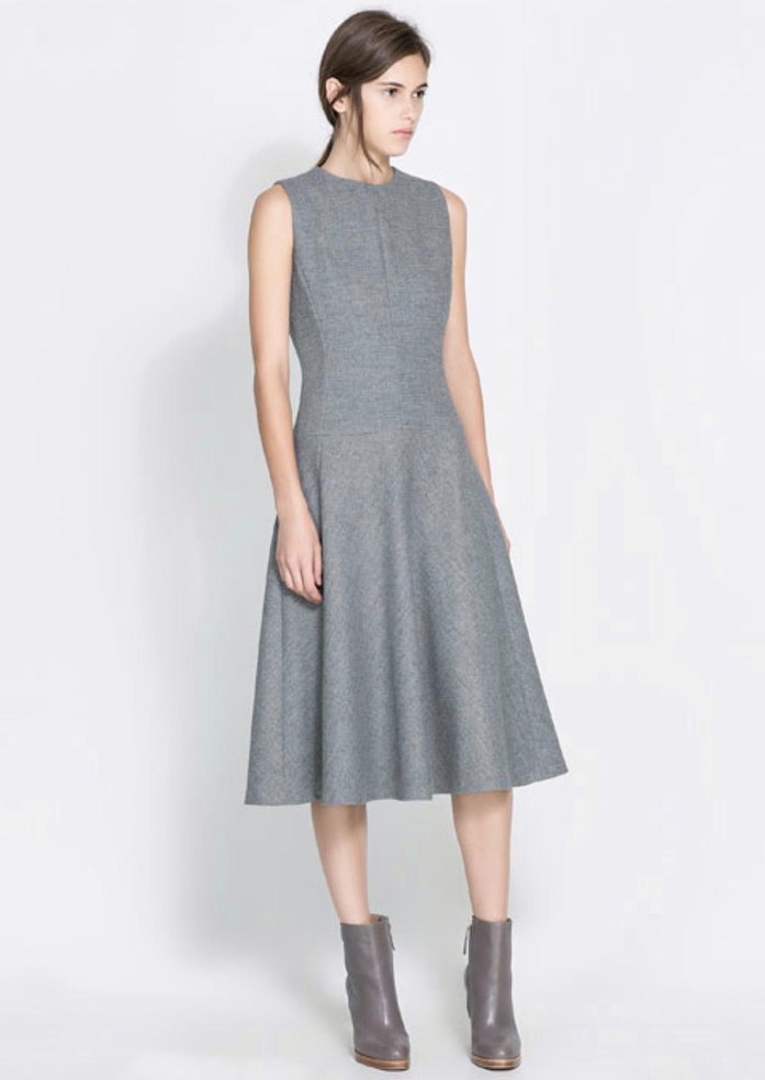 ZARA LANA YÜNÜ MIXLİ MİDİ ELBİSE