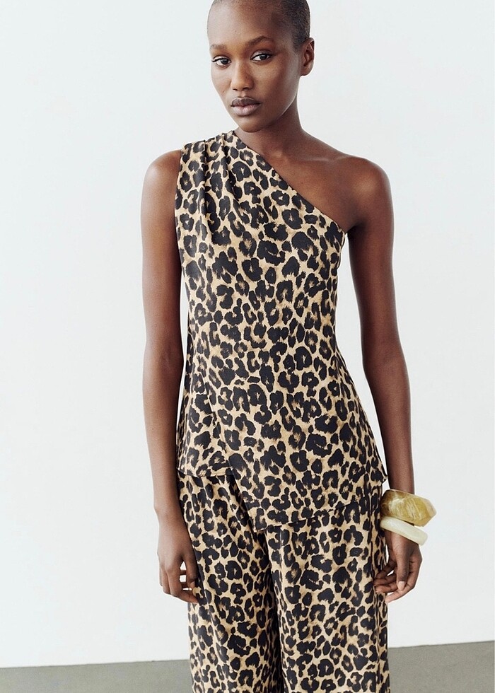Zara leopar desenli asimetrik bluz