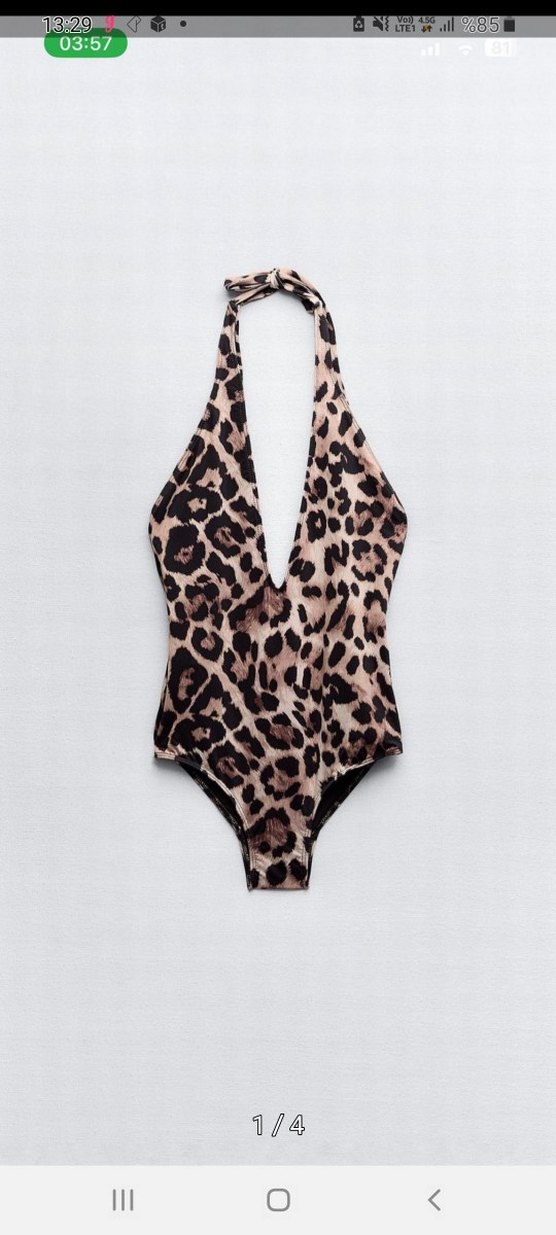 Zara leopar Desenli Kahverengi Kadın Mayo