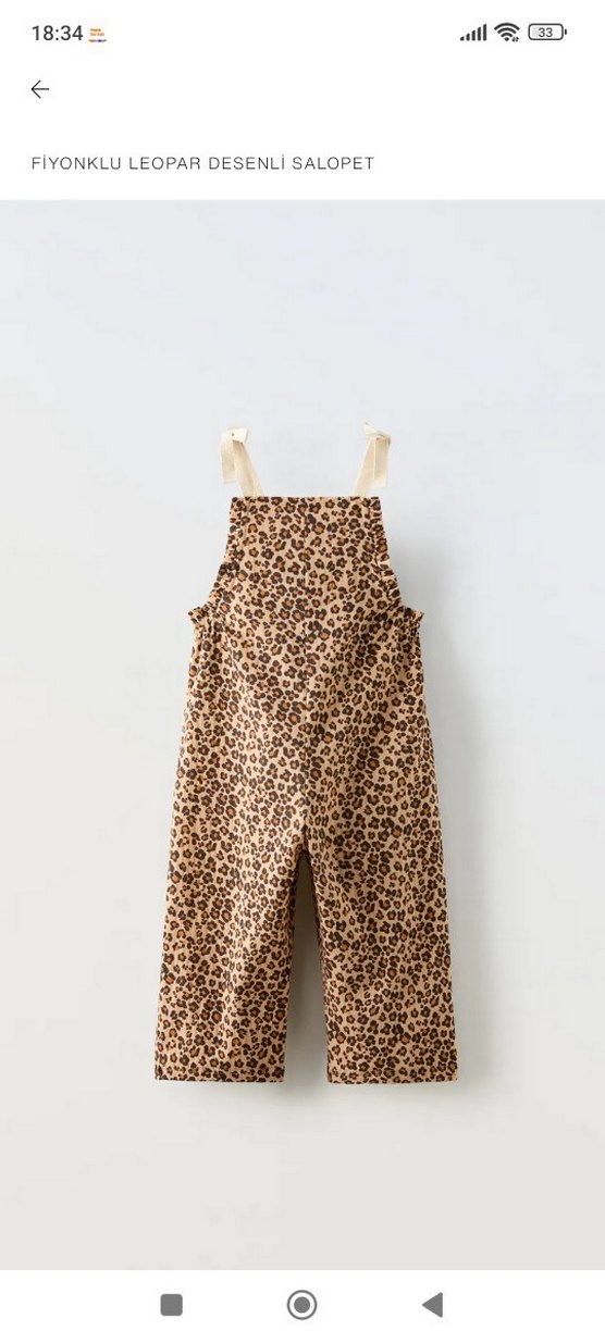 Zara Leopar Desenli Kız Çocuk Askılı Tulum Salopet