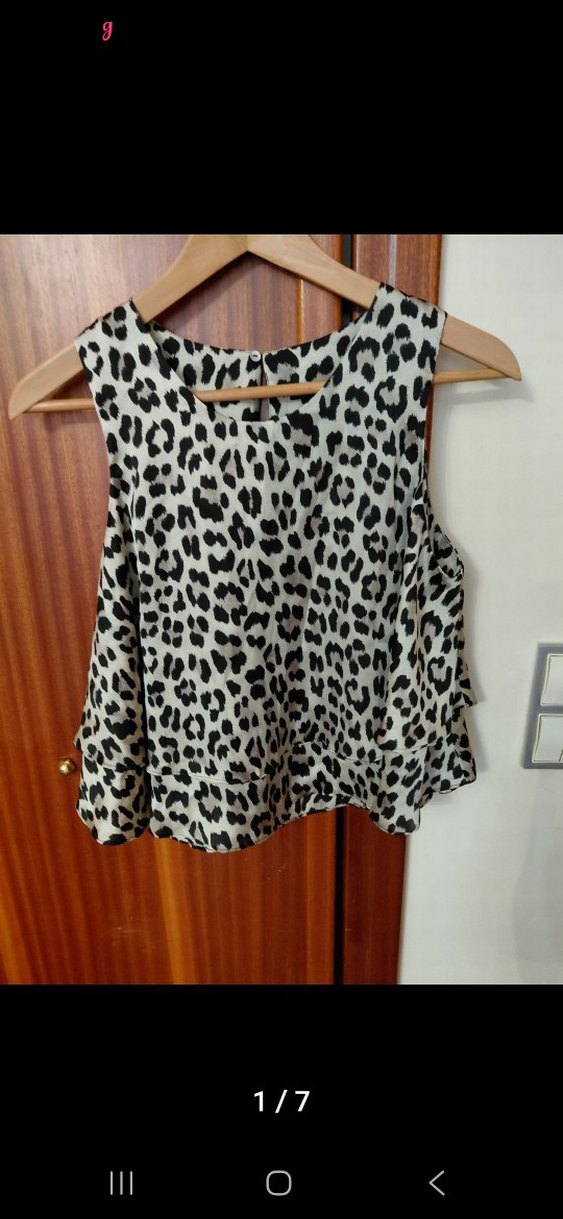 Leopar desenli, kolsuz, volan detaylı mini bluz. Sentetik kumaştan, rahat ve günlük kullanıma uygun. temiz, sorunsuz.bel kısmı bol kesim.