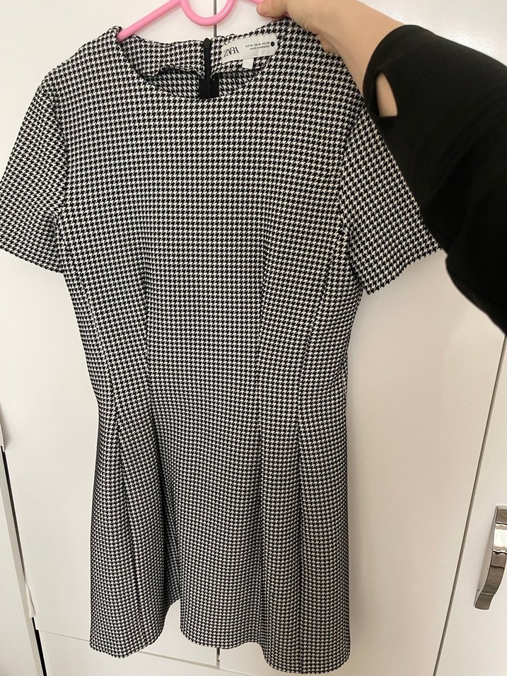 Zara M beden Kareli Piliseli Gri Elbise