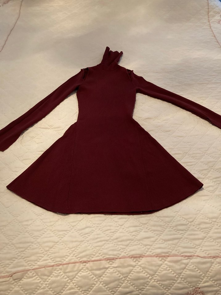 Üst beden oturuyor etek kısmında indiğinde kola oluyor ve mini. Vücudu çok güzel gösteriyor. Balık içi yaka. Kol bitimlerin yırtmalı. Omuzlarda pencere var. Bir tarafta ufak soluk varmış. Dikebilirsiniz. Gerçekten güzel. Atamıyorum. Deformasyonu hiç yok ve kumaş yepyeni. #zara