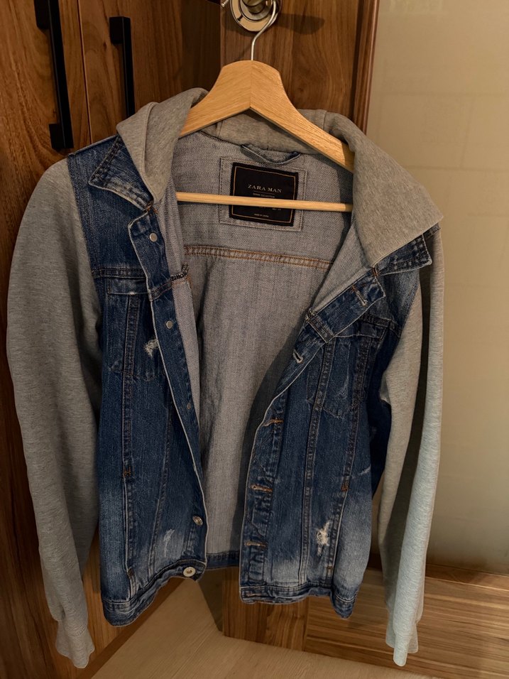 Spor ve günlük kombinler için çok tarz Zara Man jean ceket. İç kısmı ve kolları gri sweatshirt kumaşlı, kapüşonlu modeldir. Tek parça gibi görünen çift kumaş tasarımı sayesinde çok rahat ve modern durur. • Marka: Zara Man • Model: Kapüşonlu jean ceket • Renk: Mavi jean & gri sweatshirt • Stil: Spor / casual • Durum: Çok iyi durumda, temiz kullanılmış ✨ Günlük kombinlerin kurtarıcı parçası
