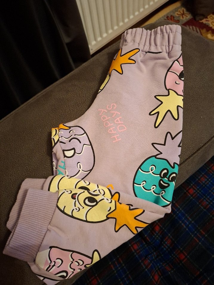 Pastel tonlarda, bol kesim kız çocuk eşofmanı, yumuşak ve sıcak kumaş, desenli ve düğmeli detaylarla sokak modasına uygun.