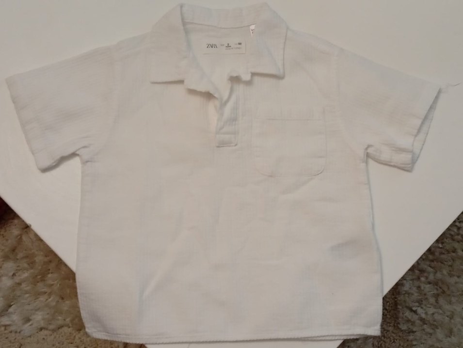 zara marka Beyaz Keten Kısa Kollu Erkek Çocuk Gömlek