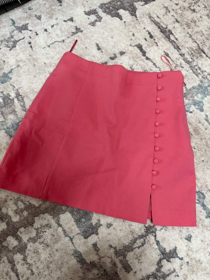 Zara marka Düğmeli, pembe renkli, dar kesim mini etek.