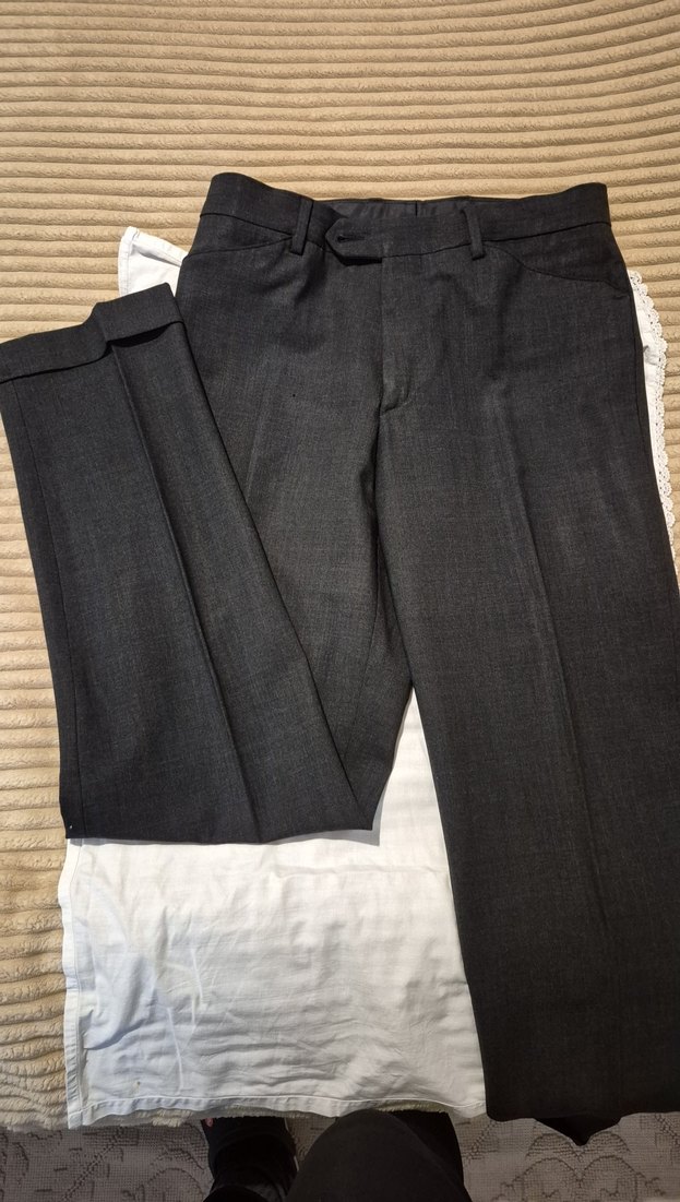 Zara Gri renkli, regular fit kesim ve düğmeli kapamalı erkek pantolon. Ofis kullanımı için uygun, yumuşak kumaştan üretilmiştir. ön kısımda ufak bir delik vardır.