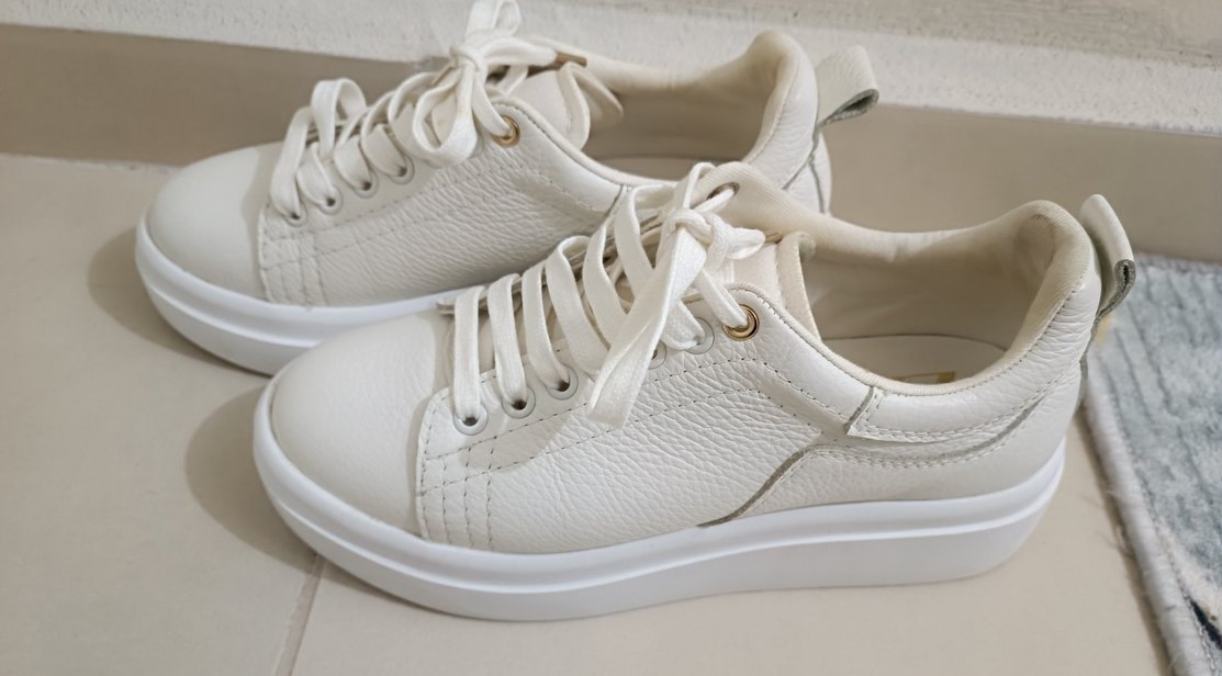 Sıfır ayarında sorunsuz Zara kadın beyaz krem spor ayakkabı. Oldukça şık rahat kaliteli kullanışlı ayakkabı bir kaç kez kullanıldı sadece temizdir. İhtiyaç fazlası olduğu için satıyorum.