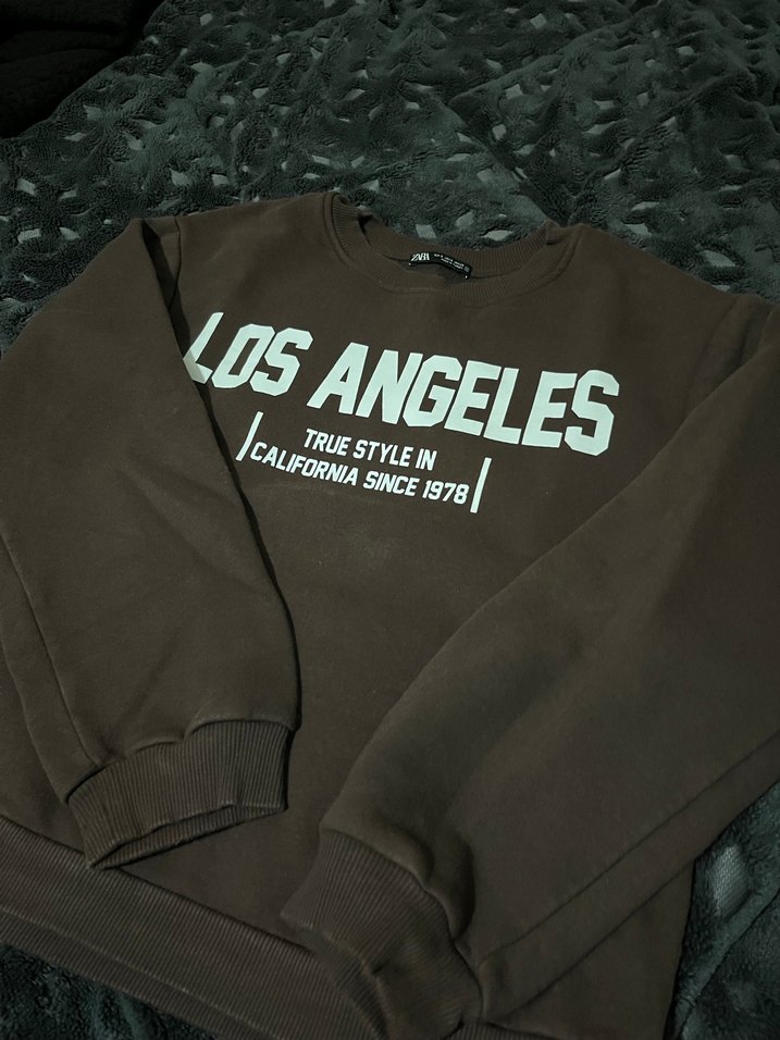 Zara marka Kahverengi Kadın Sweatshirt Los Angeles Baskılı