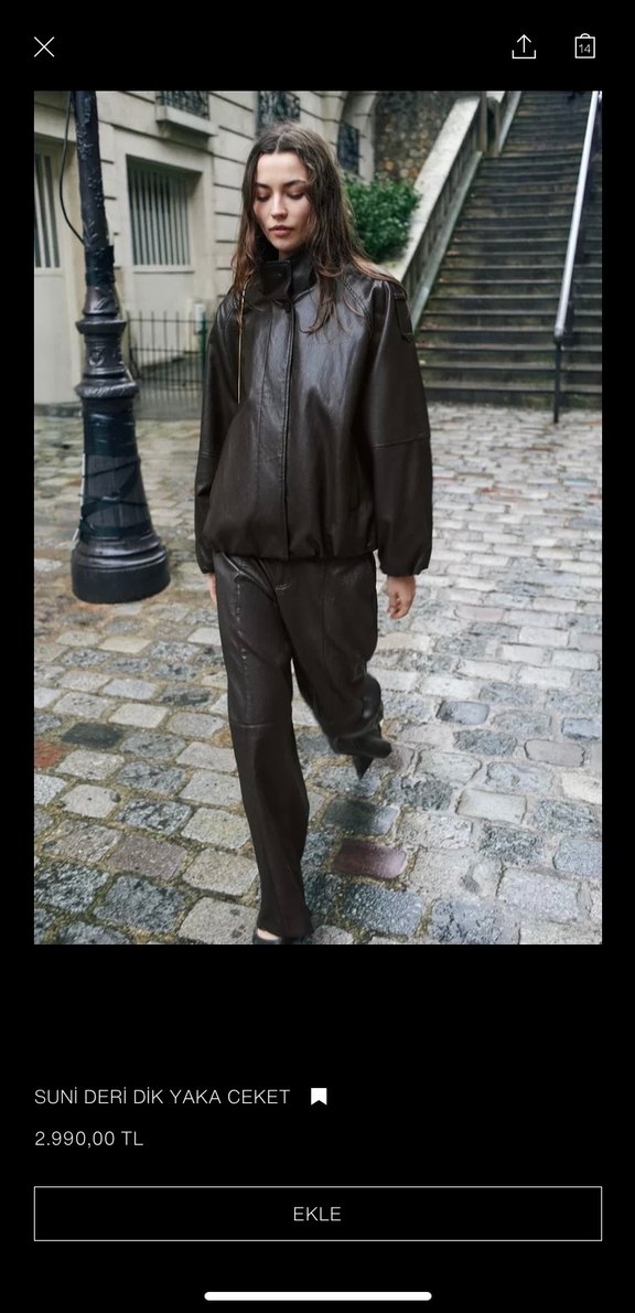 Zara marka orijinal yeni sezon Suni Deri Dik Yaka Ceket