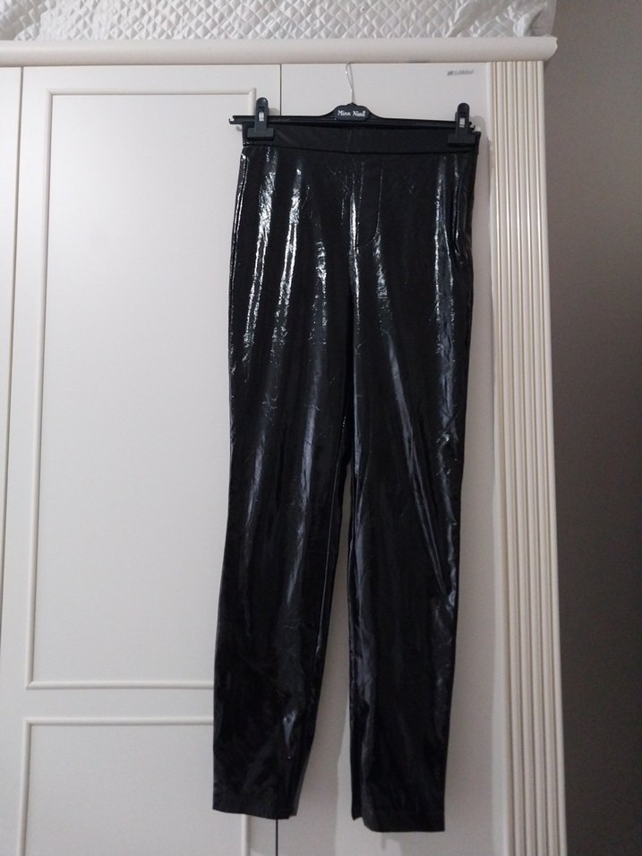 zara marka Parlak Siyah Deri Kadın Pantolon