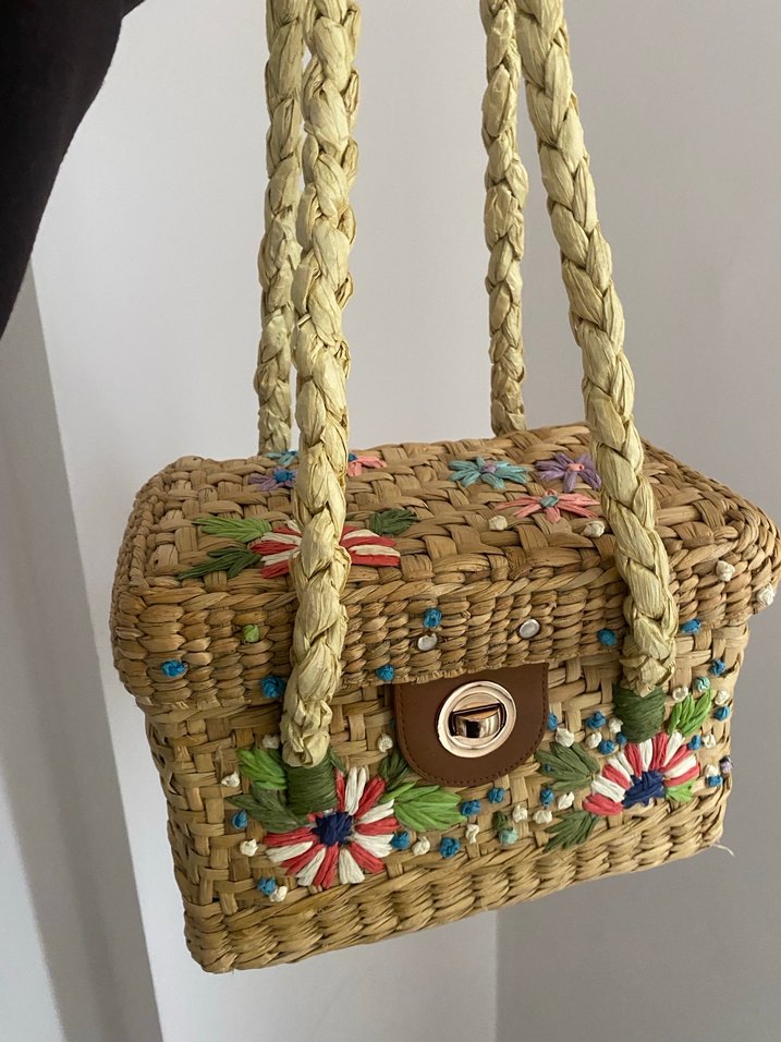 Zara marka Renkli Nakışlı Boncuklu Örgü Kadın Çanta
