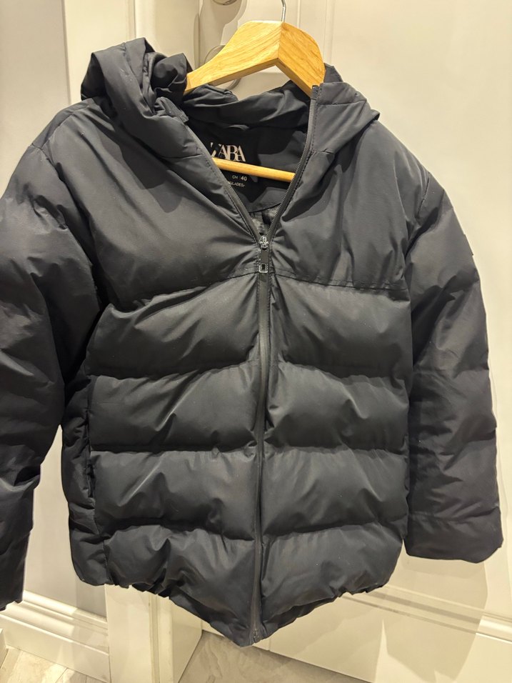 Zara marka siyah Fermuarlı kapüşonlu çocuk Montu
