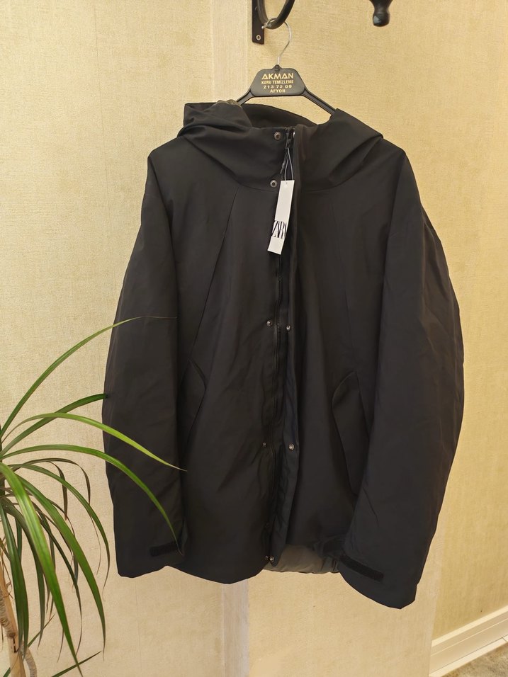 Siyah renkli, kapüşonlu ve fermuarlı erkek ceket. Uzun kollu, normal boy ve sentetik kumaştan üretilmiştir. Günlük sokak stili için uygundur. %100 orjinal Zara marka üst kalite sıfır etiketli..L-Xl ayarında