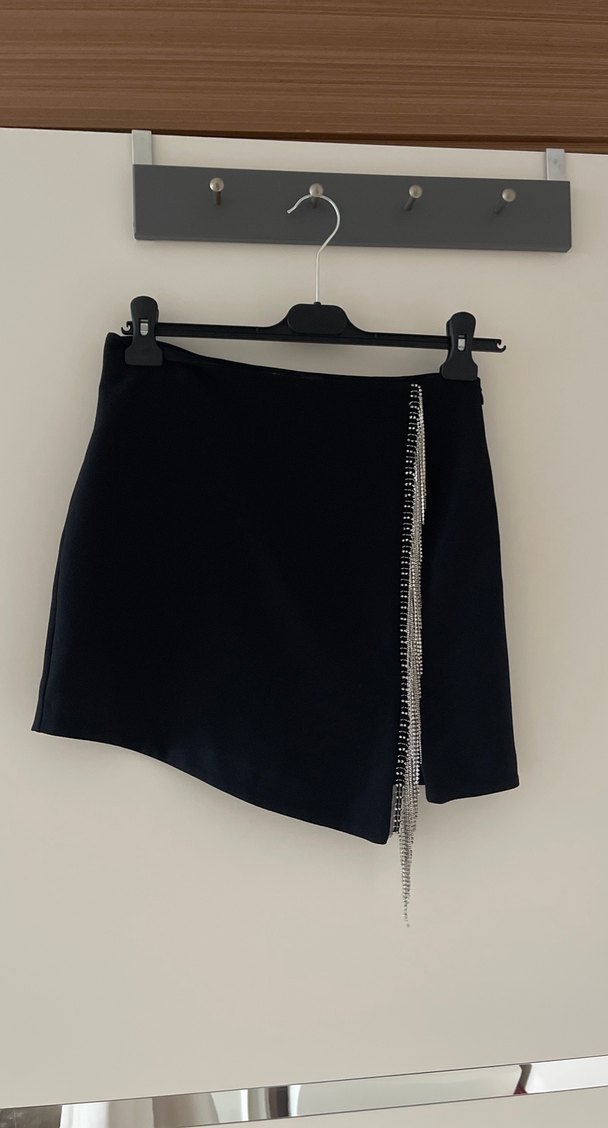 Zara marka Zincir Detaylı Siyah Mini Etek