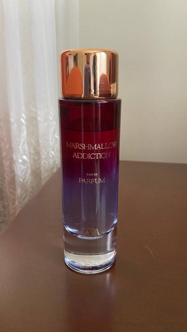 Altın kapaklı, degrade renkli şişede Marshmallow Addiction kadın parfümü, tatlı ve bağımlılık yaratan kokusuyla öne çıkar. Eau de parfum yoğunluğunda.