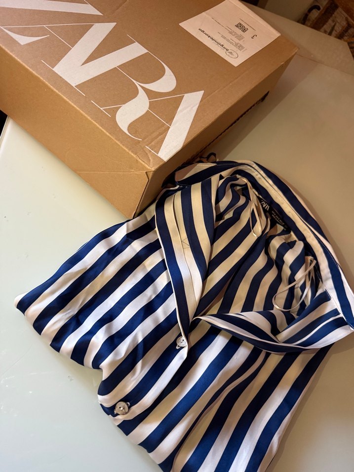 Zara Mavi Çizgili Saten Gömlek