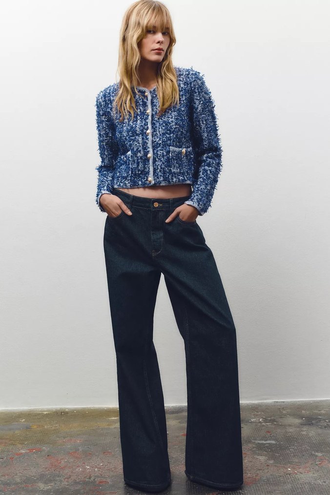Zara Mavi Ceket. Yuvarlak yakalı, uzun kollu ceket. Ön kısım cepli. Düğmeli. İç etiketi mevcut değil. %65 Polyester %35 Pamuk. Çok az kullanıldı. #zara #crop #ceket #cropceket #zaraceket #mavi #raf4