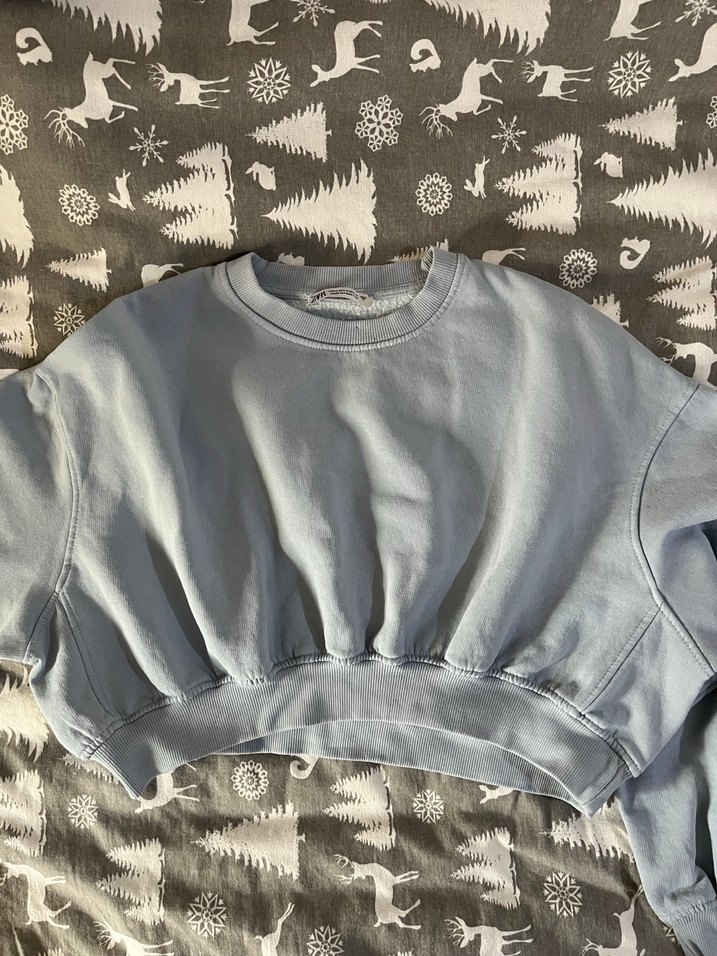 oversize kalıp crop ici sardonlu mavi sweatshirt.