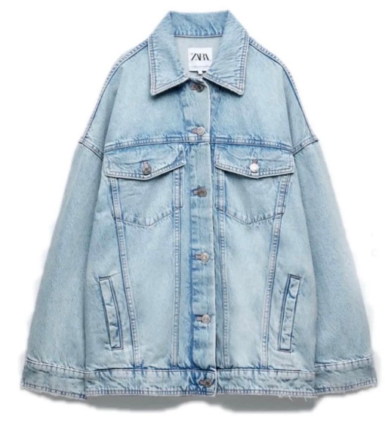 Zara Pastel mavi renkte, düğmeli ve salaş kesime sahip kadın kot ceket. Notlu yakalı, uzun kollu ve midi boydur. Günlük rahat kullanıma uygundur.