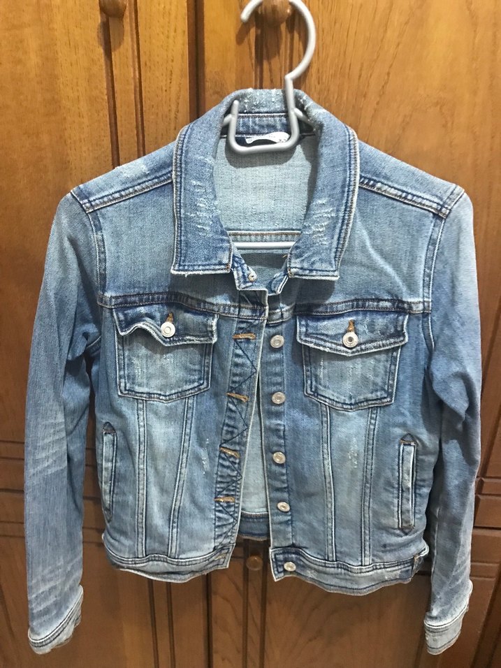 Düğmeli, normal boy ve uzun kollu, mavi renkli kadın denim cekettir. 1 kez kullandım bedeni olmadığı için satıyorum.Ürünün kumaşında kendiliğinden eskitme yüzeyleri var yıpranmış değildir.İade yoktur.