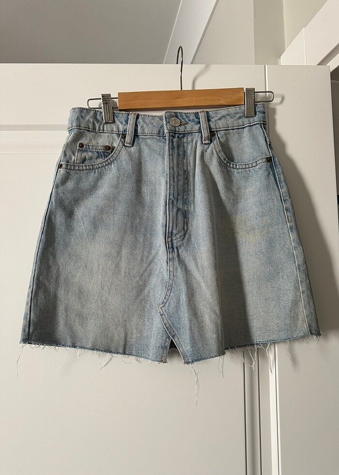 Artik bana olmadigi icin satiyorum. Bel 35cm ve boy 41cm. Uzerinde bir lekesi var ama kendisi de beyaz eskitmeleri olan bir etek oldugu icin beni cok rahatsiz etmiyordu. Bu yuzden Zara’ya gore uygun bir fiyata satiyorum.